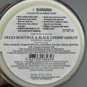 Bath And Body Works 3 Wick Candle HELLO BEAUTIFUL & BLACK CHERRY MERLOT New