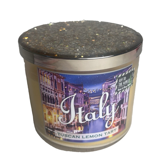 Bath And Body Works Italy Tuscan Lemon Tart 3-Wick Candle Glitter Lid