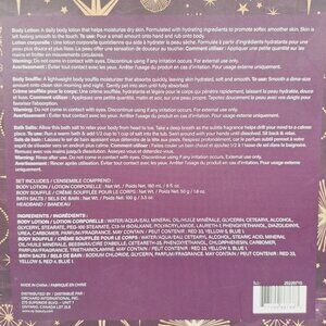 Gift a spa day at home! Perfect gift for Mothers Day, Valentines Day, Stocking Stuffers, Birthdays and more. Comes with a set of Vanilla scented Body Lotion., Body Soufflé, Bath Salts and a Soft Purple headband. Bundle and Save!