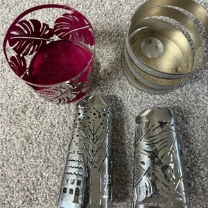 Bath & Body Works 3-Wick Candle Holders and soap covers snowman– Set of 4 Silver