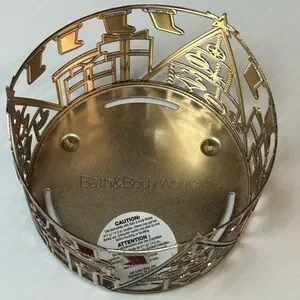 Bath & Body Works 3-Wick Metal Gold Candle Holder Christmas Trees Stockings