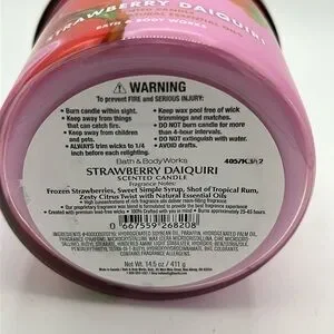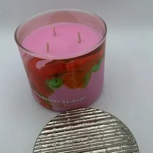 Bath & Body Works 3-wick Strawberry Daiquiri 14.5-ounce pink candle. Never used. Measures 4” in diameter and 3.5” high.