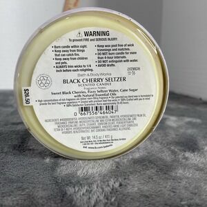 Elevate the ambiance of your living space with this luxurious Bath & Body Works BLACK CHERRY SELTZER 3 Wick Candle. The round jar design is perfect for displaying in any room and the scent is a delightful blend of black cherry and seltzer water. This candle is perfect for those who enjoy a sweet and fruity aroma.