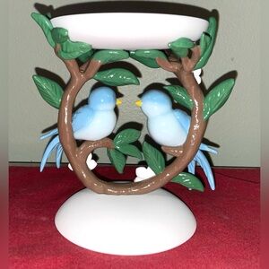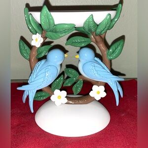 Blue birds pedestal three wick candle holder and blue bird wallflower plug.