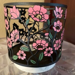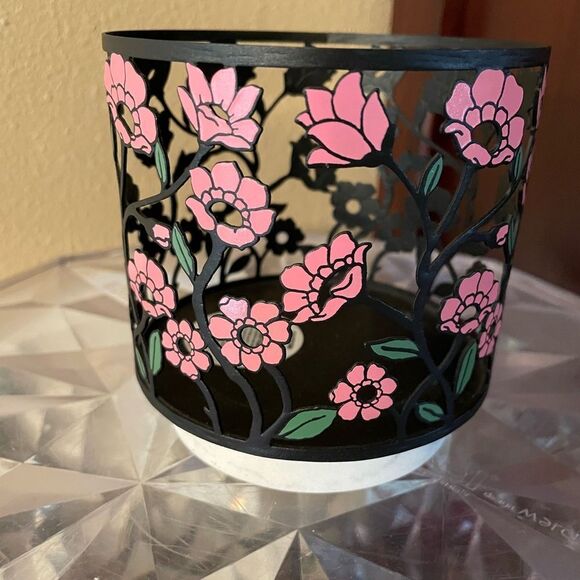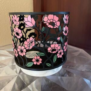 Bath & Body Works Black Metal Pink Poppy Flower Marble Base Candle Holder