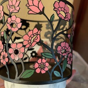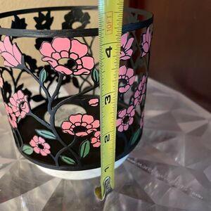 New condition! Really beautiful black metal with pink poppy flowers on a marble base! Clean home excellent condition! The marble base is sturdy and solid! The pink on black pops!