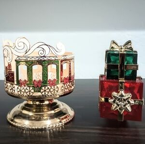 Gold Train 3 Wick Candle Holder and Stacked Presents Light up Wallflower Plug