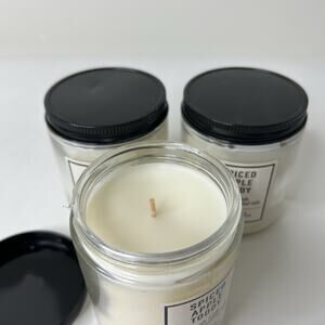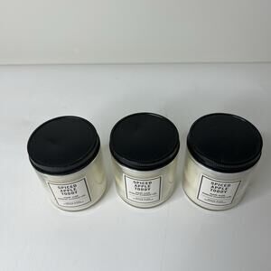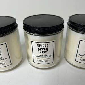The Bath & Body Works Candles Spiced Apple Toddy 7oz Essential Oils Lot Of 3 are small white jar/container candles infused with the apple scent. Made with essential oils, these candles are perfect for creating a cozy and inviting atmosphere in any room. The set includes three candles, each featuring the Apple Toddy fragrance, ideal for adding a touch of autumn and apple aroma to your space.
