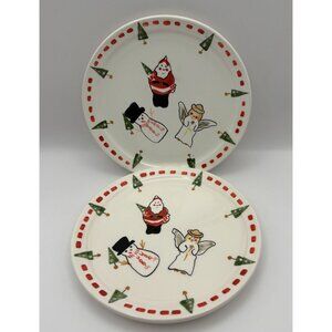 Bath & Body Works Christmas Candle Plate Set of 2 Snowman Santa Angel Vintage