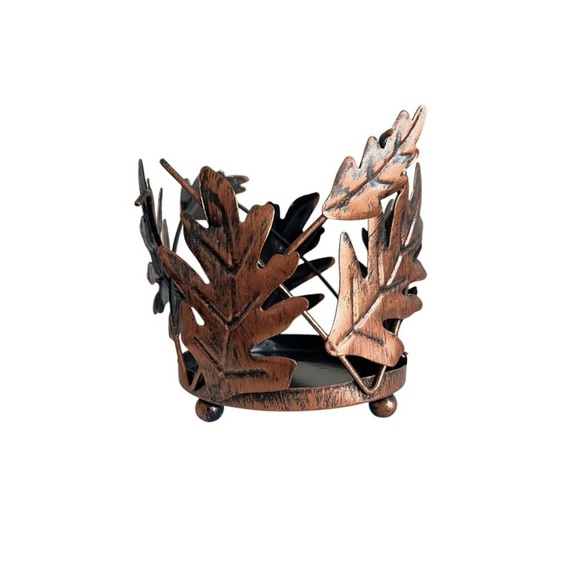 Bath Body Works Fall Autumn Leaves Candle Holder Tealight Bronze Brushed Metal