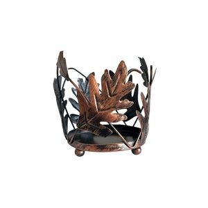 Crafted from bronze-tone metal with a brushed finish, this cylinder shaped candle holder features a gorgeous leaf pattern that is perfect for any room in your house. Measuring at approximately 4.75” in height and 4” in base diameter, this rustic candle holder is designed to hold your favorite scented tealight candle and create a warm, inviting atmosphere. Note: For use with metal tealight candle only. (No tealight is included in this purchase).