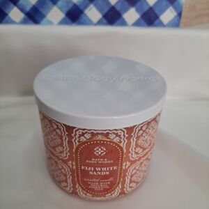Experience the serene aroma of the Bath & Body Works Fiji White Sands Scented Candle. This orange candle is crafted with natural essential oils to create a calming atmosphere.