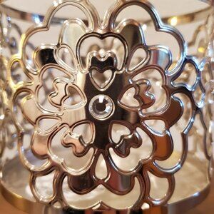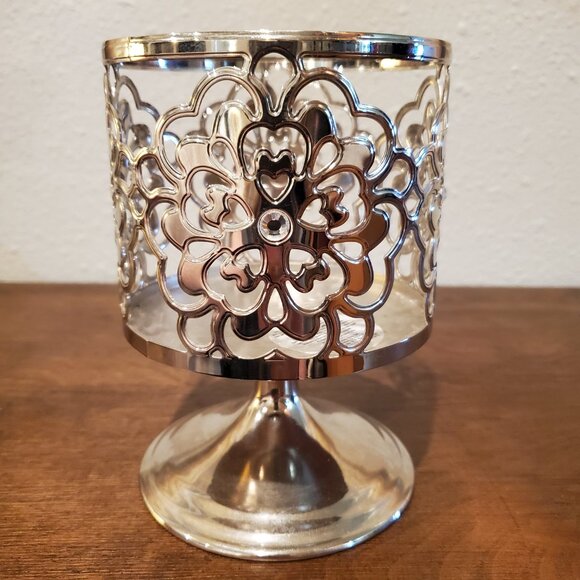 Bath & Body Works Silver Flower Heart Gem 3-Wick Pedestal Candle Holder.