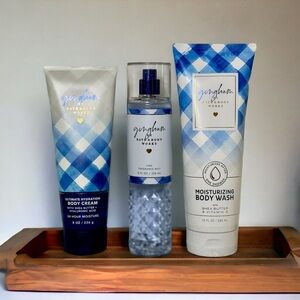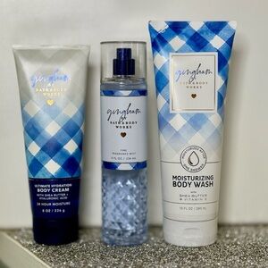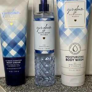 Bath and Body Works Gingham Body Care Gift Set. Body Wash, BodySpray and Body Cream Lotion. Full size. New. Sold as set only.