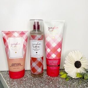 Bath and Body Works Gingham Love Giftset Body Lotion Cream Spray Body Scrub Birthday XMas Winter Gift Set Bundle BBW Teacher Co worker Friend Family Holiday Gift Christmas Gift