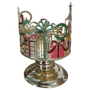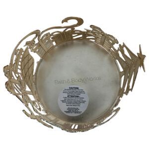 Bath & Body Works Gold Christmas Holiday Tree Presents 3 Wick Candle Holder