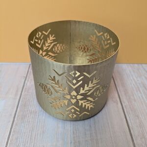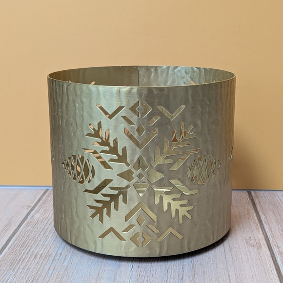 Gold 3 wick candle holder with snowflakes and pinecones Holiday Christmas candle holder