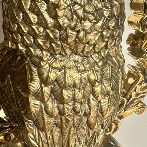 Stunning gold-tone owl candle holder featuring intricate floral detailing and a vintage-inspired design. Beautifully crafted with a reflective metallic finish that adds elegance and warmth to any room.