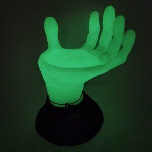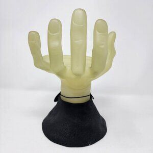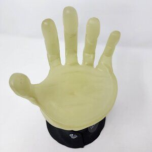 Frankenstein's hand with a flat rounded spot to set a 3 wick sized BBW candle, hand glows in the dark as seen in photos
