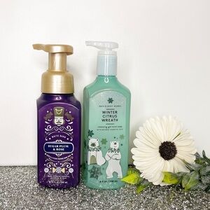 Bath & Body Works New Release Winter Holiday Scents Hand Soaps. Sugar Plum & Rose and Winter Citrus Wreath. Gentle & clean foaming and gel hand soaps. New.
