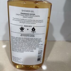 Indulge in the luxurious Bath & Body Works Honey Wildflower Shower Gel. Enriched with aloe and vitamin E, this gold-hued gel offers a refreshing cleanse with a hint of honey.