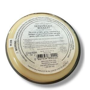 BBW Bath & Body Works Honeysuckle Bouquet 3 Wick Candle 14.5 oz Hostess Gift, Home Decor, Rare 25-45 Hours Burn Time NEW, Made in the USA, Vegetable wax & Lead free wicks