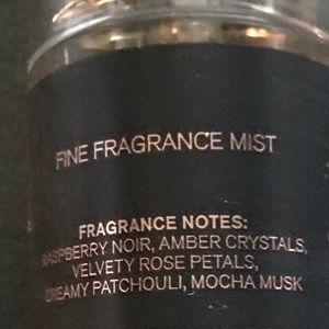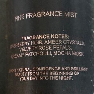 raspberry noir, amber crystals, velvety rose petals, creamy patchouli and mocha musk.
