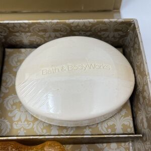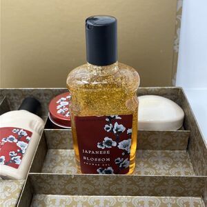 Bath Body Works Japanese Cherry Blossom Original PLEASURES Set. This set includes 5 full and unused items as shown: 8 oz body lotion, 8 oz body splash, 10 oz shower gel, 4 oz bar soap, and 4 oz candle. Note: Items do not have a seal. Also, set does NOT include the bubble bath that is listed on the exterior label. Please see photos for additional details. You will receive exactly what is pictured.