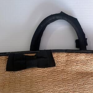 Bath & Body Works Large Straw Picnic Tote Beach Pool Bag Tan & Black Bow Accent