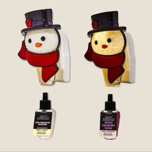 Bath & Body Works Snowman Light Up Wallflower Plug In Nightlight & 2 Refills NWT