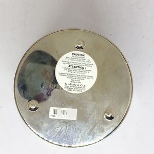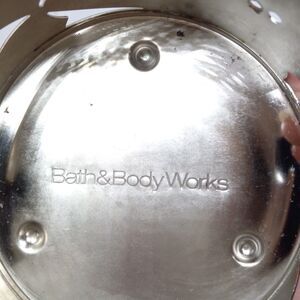 * Bath & Body works 3 wick metal candle holder. Has painted snowman & silver snowflakes. Measures approximately 4" in diameter & 4" tall. Has some paint loss, and some scuffs. Otherwise in good condition.