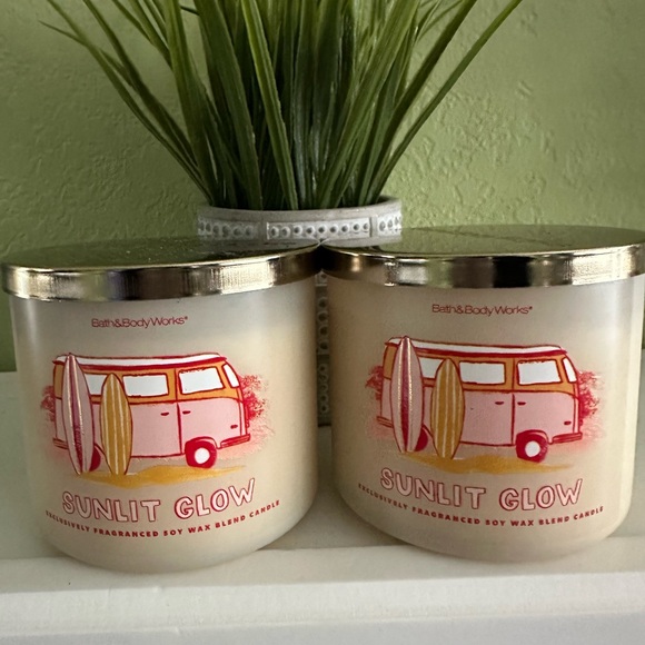 Bath & Body Works Sunlit Glow Candle Bundle Cream and Pink