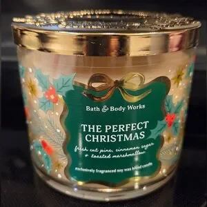 Experience the festive aroma of fresh cut pine, cinnamon sugar, and toasted marshmallow with Bath & Body Works' The Perfect Christmas Candle. Encased in a beautifully designed jar, this candle adds a touch of elegance to your holiday decor.
