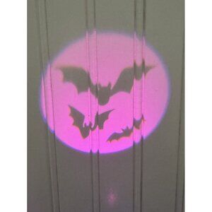 Bath & Body Works Halloween Haunted Conservatory Projector Wallflower Plug Diffuser. Projector projects black bats against a pink light on the wall.