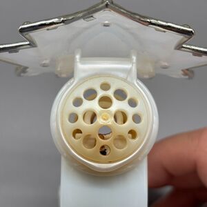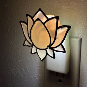 Bath & Body Works Wallflowers fragrance plug-in diffuser featuring an iridescent lotus flower design with silver-tone outlines. Works properly and lights up beautifully when plugged in. Compatible with standard Wallflowers fragrance refills. Light residue discoloration from use but otherwise very good condition.
