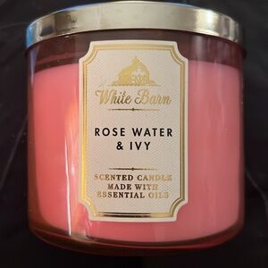 Bath & Body Works, White Barn 3-Wick Candle w/Essential Oils 14.5 oz - New Core Scents! (Rose Water & Ivy) NEW!! (slight Discoloration on lid)