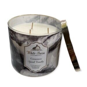 Bath & Body Works*White Barn* Cinnamon Spiced Vanilla 3-wick Candle 14.5 oz NewThe lid has some rust spots, but the candle is new and unused.Fragrance notes: Fresh Ground Cinnamon, Sugar Crystals, Tahitian Vanilla BeanPlease view photos for details.