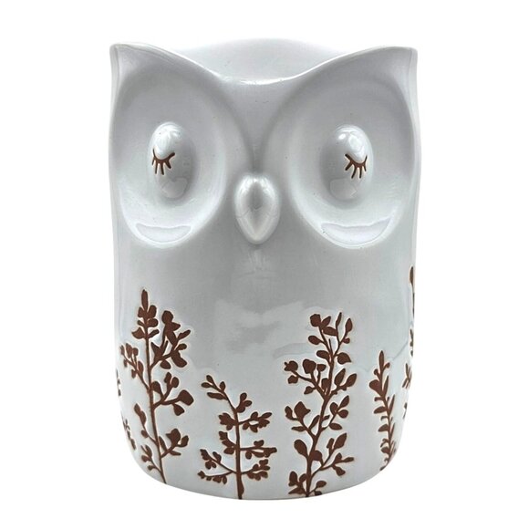 Bath & Body Works White Owl Pedestal 3 Wick Candle Holder Plant Stand
