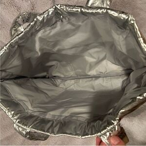 Stylish and spacious, this Bath & Body Works silver tote bag is perfect for everyday use. Its sleek design and durable material make it a must-have accessory.