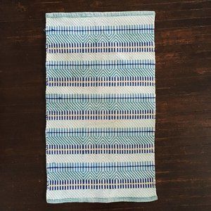 Woven bath mat in good condition! Cool blue and turquoise hues