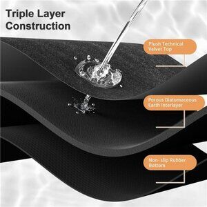 🧿【Quick Dry With Instant Absorption】These are soft version of the diatomaceous earth bath mat. Featuring newest nano technology and up to 90% porosity, The high-quality diatom mud foam interlayer absorbs moisture instantly. This stone bath mats permeates water within seconds, and dries off within a couple of minutes. It keeps your floor crispy dry and home utmost clean.