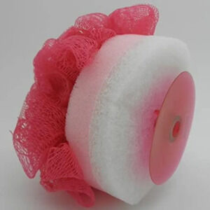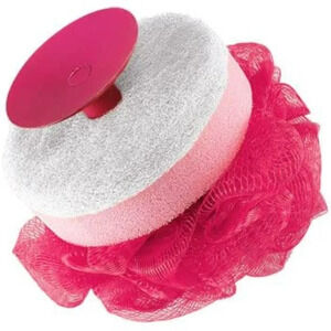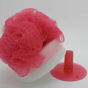 Dual Sided for exfoliation and cleansing. Suction cup holder for when pouf is not in use and easy hanging. 3/4" H x 4" Diameter