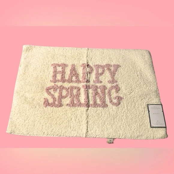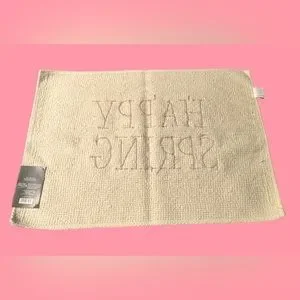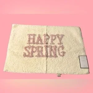 Brand new with tags bath rug in Ivory color with Pink color lettering with the words “happy spring” on it. Threshold brand bath rug. Size: 17” by 24” ( 43.1 cm x 60.9 cm). Bath rug made out of: pile- 100% cotton.
