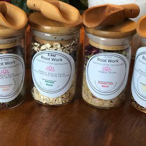 Enjoy the wonders of our Crystal infused bath salt herbal blends. Relaxing and releasing with these blends are perfect for self care routines.