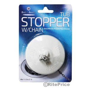 Title: (2 Pack) Bath Tub Drain Stopper with Chain, Rubber Material, (White Color)