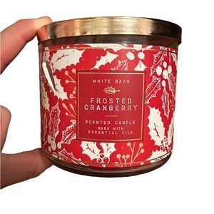 Bath and Body Works 3 Wick Candle Frosted Cranberry, New With Cosmetic Flaws.