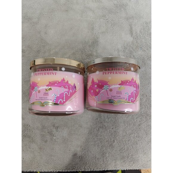 Bath and Body Works 3 Wick Candle Twisted Peppermint Set Of 2