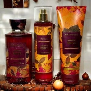 Bath and Body Works Autumn Drive Gift Set. Body Cream, Body Wash, and Mist. Full size. New. Sold as set only.