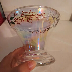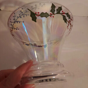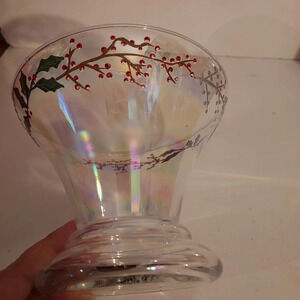 Bath and Body Works Christmas Iridescent Shine Glass Vase with Holly Ivy Design