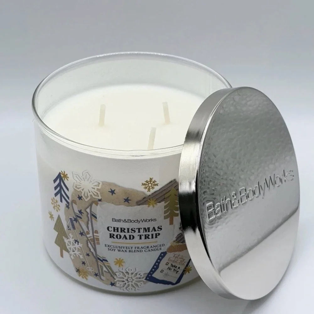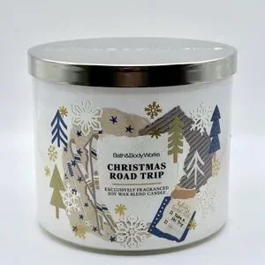The NEW Bath & Body Works Christmas Road Trip Fragranced 3-Wick Large Candle is a festive and aromatic addition to your home. With a glass container, white color, and a wax blend material, this scented candle emits a warm and inviting amber scent. Ideal for indoor use, this candle is perfect for creating a seasonal atmosphere during the holiday season. Made in the United States, this 14.5oz candle is sure to enhance your space with its pleasant fragrance and multiple wicks for a longer-lasting burn.